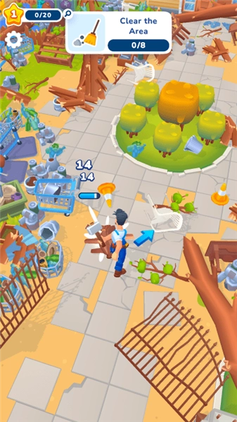 2、然后靠近地面上的垃圾,自动的清理获得道具。