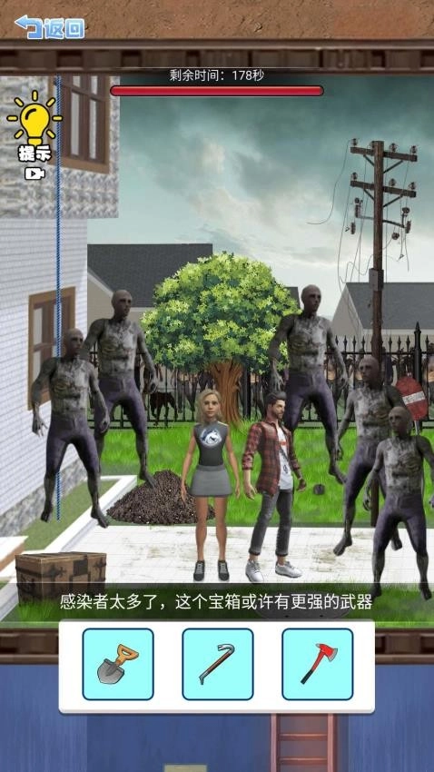 末日毫无征兆地降临,丧尸如汹涌潮水般席卷而来!你必须带着伙伴,在不同的地点与丧尸展开智慧与勇气的较量。每抵达一个地方,下方都会出现三个工具选项,宛如神秘的盲盒。你需要迅速思考,选对合适的工具、采取合理的行动,才能巧妙地避开丧尸,一步步朝着安全屋前进,过程既刺激又充满挑战。