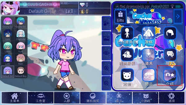 1、打开《加查宇宙》游戏,进入主界面后,点击右上角的【介绍】按钮。