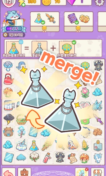 《猫咪合成之王》正式版是一款主打可爱猫咪合成玩法的休闲闯关游戏。游戏中,每次合成都会呈现完整的魔法变化动画,让每个合成瞬间都更具视觉吸引力。玩家能够通过合成魔法食材,解锁发光汤、悬浮料理等多种特色魔法食谱,每道食谱都对应着独特的剧情故事。此外,玩家还可以合并并制作魔法长袍、魔法帽以及各类炼金术工具等魔法物品。