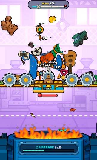 1、玩家可以通过游戏内获得的金币升级粉碎机的各项性能,如力量、速度和精准度。
