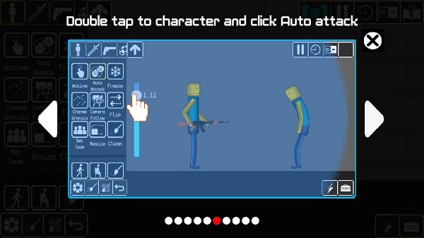 6、在玩家初步布置好一切后,可以双击人物,打开功能栏,选择Auto Attack,然后拉动左侧的进度条进行自动射击。
