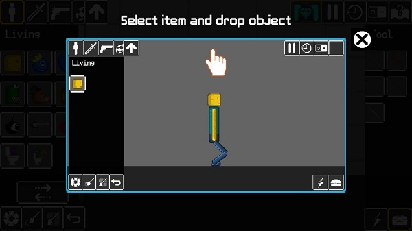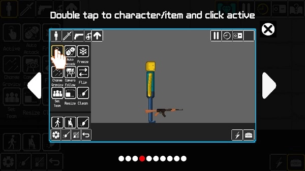 1、进入游戏后,在沙盒创造的左上方有关于人物、武器的下拉菜单,选择人物,点击地图场景即可添加。