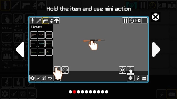2、游戏里的人物,可以通过配备武器进行模组间的互动,如若单击武器,可以点击武器进行单一互动。