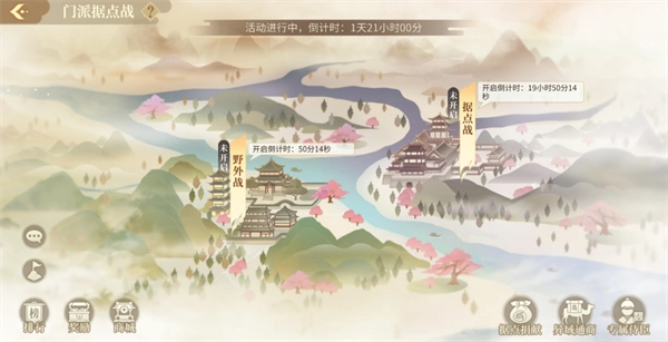 门派据点战分为准备阶段、野外战、据点战和通商四个阶段。活动共计6天时间