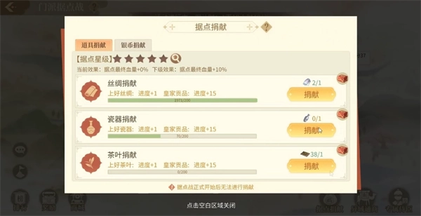 同时在【据点捐献】中,还可以直接使用银币进行捐献。