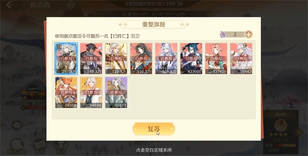 “死亡”的羽卫需要通过野外战复活令复苏后,才可以再次编队继续参加野外战。