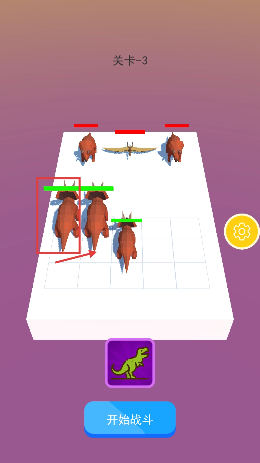 3、完成恐龙布阵后,点击下方蓝色的【开始战斗】按钮,让恐龙部队出击对抗敌人吧。