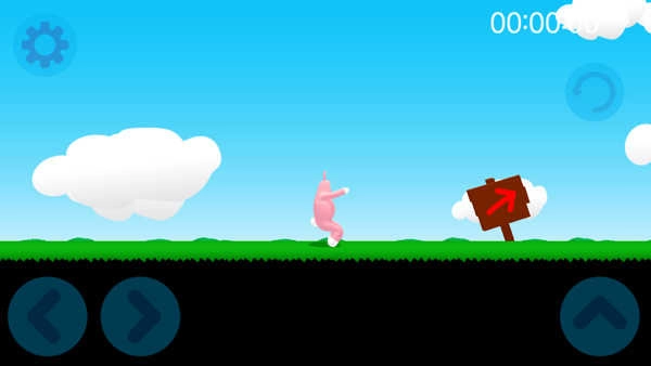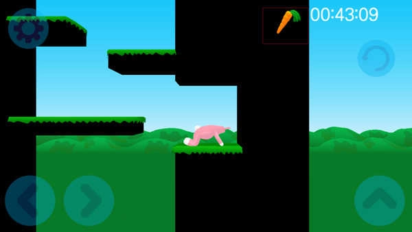 3、正式进入关卡挑战,先来熟悉一下操作流畅,左下方的左右按钮可以控制兔子人移动,右侧则是跳跃按钮