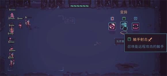 2、天赋方面选择增加召唤物攻击,增加血量的,增加攻击速度之类的,最重要的道具是触手射击,拿到这个道具后召唤的触手可以远程攻击,不用担心被放风筝。