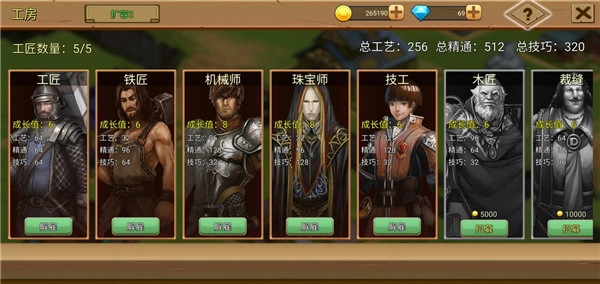 4、工匠。工匠和装备制作,声望任务挂钩。前期资源少,高级装备也很少做,所以只盯着精通就好,努力买到全是124精通的工匠,工艺能高点更好。等到了制造终极黄装时,才需要算换成124技巧,但那是极其遥远的时候,以这几天的体验来看日常抽箱子和打造装备够用。
