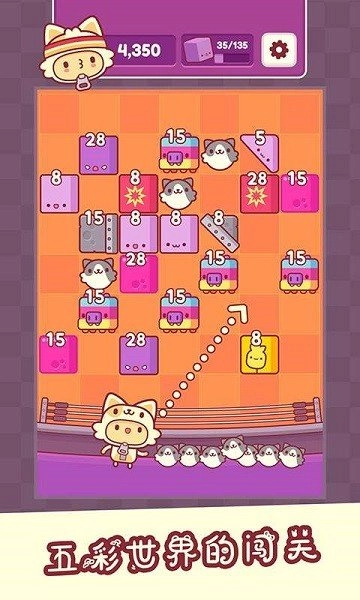4、要发射的猫猫数量非常有限,玩家需要在发射光之前尽可能消灭所有方块。