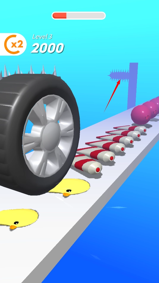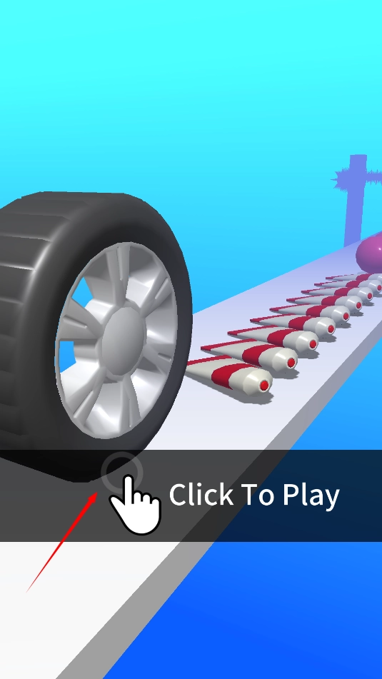 1、进入游戏后,持续按住屏幕即可操控轮胎向前移动