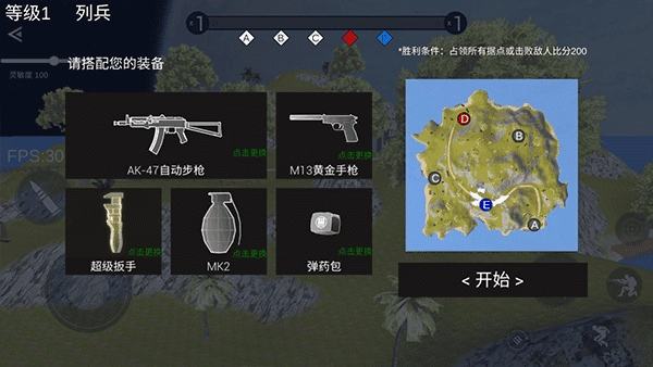 3、进入游戏时先搭配您的装备,再点击开始