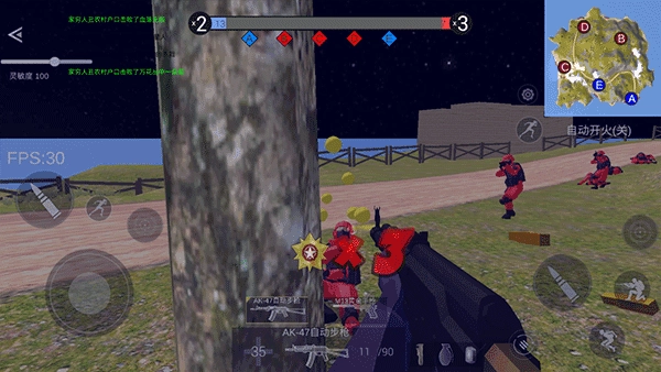4、游戏开始后利用左边摇杆操控角色的移动,右边为射击、跳跃、蹲下等操作