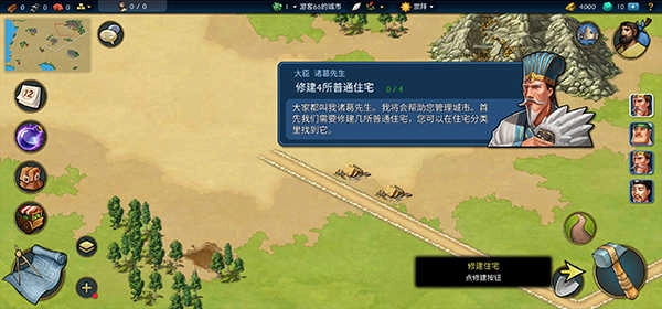 4、第一个任务就是建造四所住宅,点击右下角的斧头按钮,然后点击普通住宅,将其拖动到任务点,就可以了,不过需要有一段时间才能建造出来;
