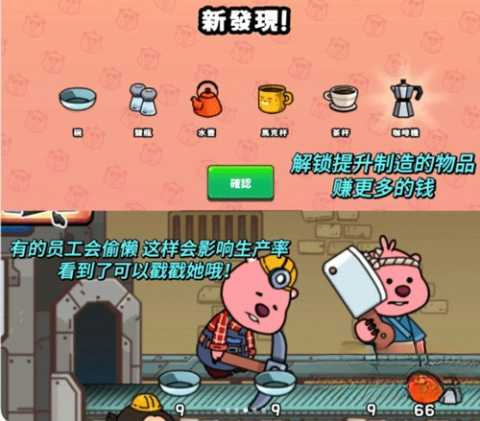 4、不断解锁和提升生产的物品,开辟更多的收益途径,赚取更多金钱。