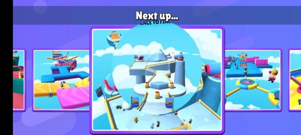 6、每一个小关卡结束后,所有玩家出现在一个个的小格子中,之后关卡挑战失败的玩家会向下掉落结束游戏,最后来到结算界面,玩家可以看见自己本次闯关的成就。