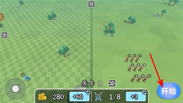 4、后续关卡中,合理调度士兵,利用兵力优势击败敌方士兵,确保顺利通过关卡。