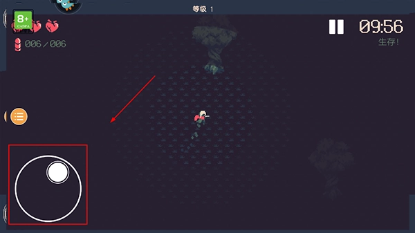 2、游戏界面右下角圆盘为控制方向;