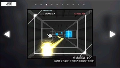 当蓝色音符接近判定线、或与边框重合时时,进行点击。