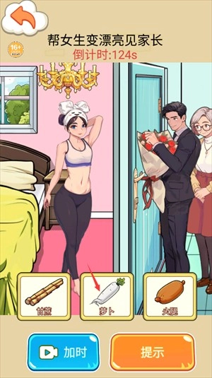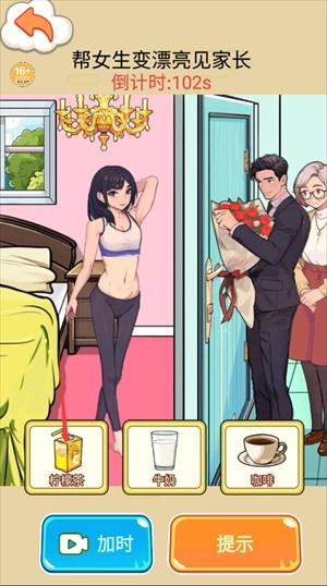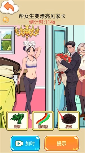 2.选择合适的道具为女友进行化妆,完成见家长的任务。