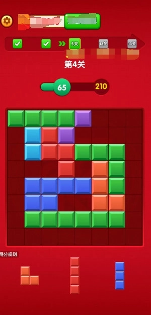 2、在空白区域随意放置方块,让这些方块自由组合,达到消除目的。