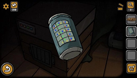 首先点击左下方的返回按钮,进入仓库寻找登船所需的工具,映入眼帘的是一个印有英文字母和阿拉伯数字的易拉罐1,还有一条不完整的绳子。