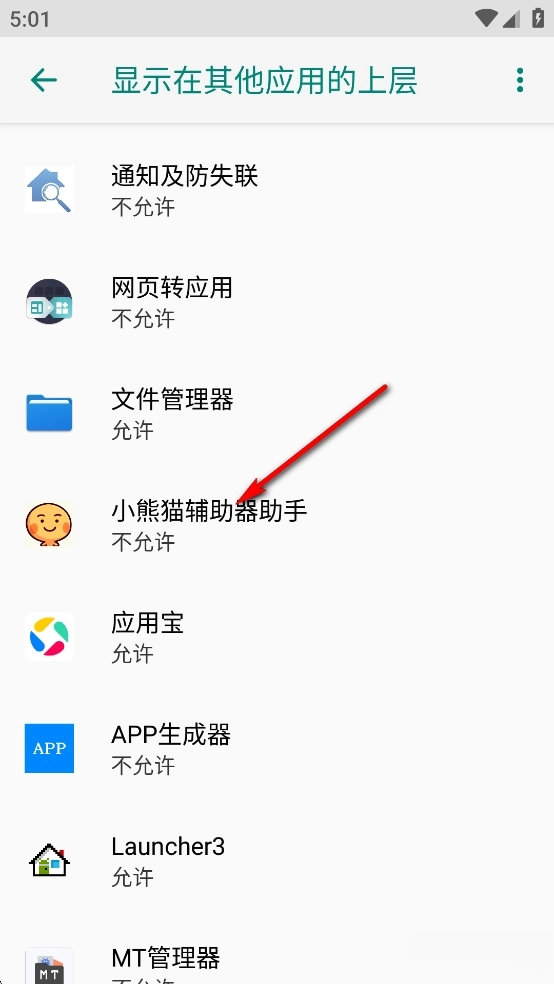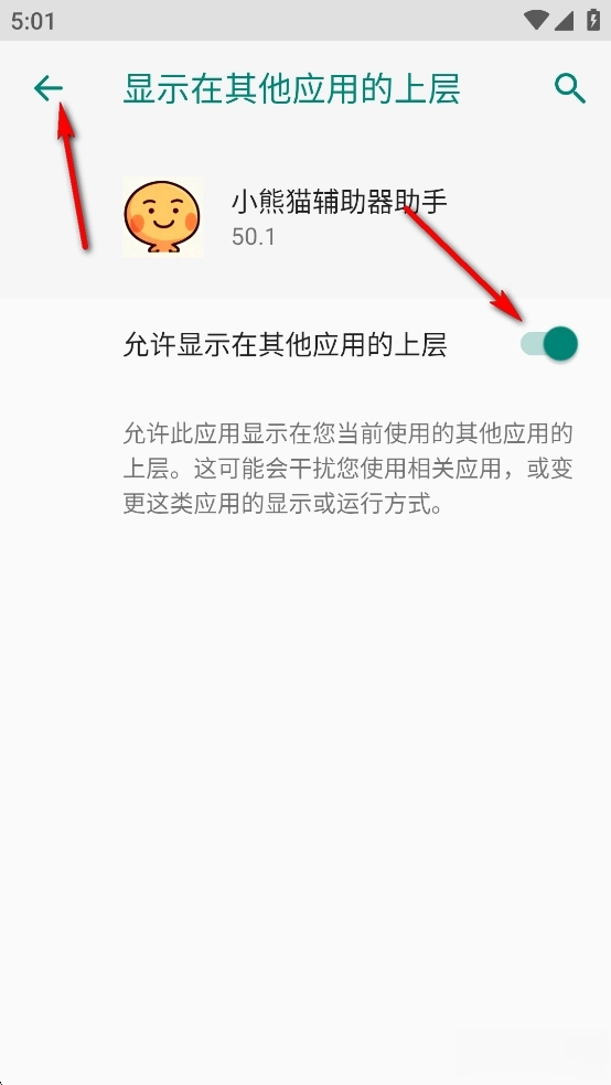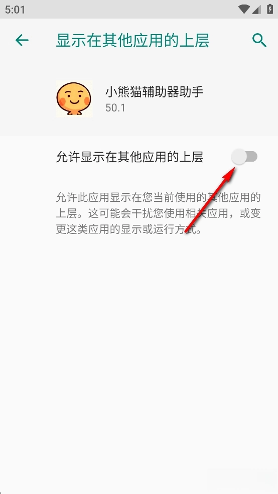 点击【允许显示在其他应用的上层】后面的开关