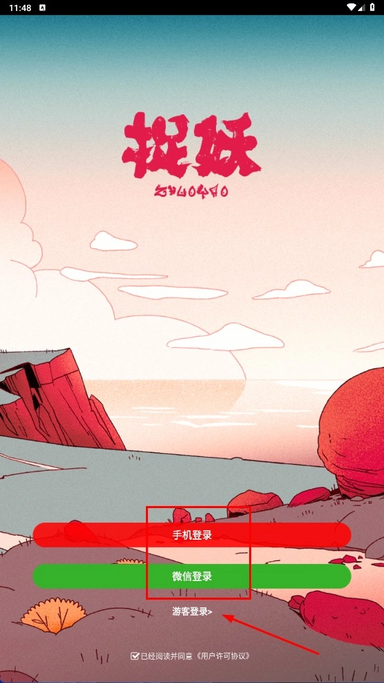 进入“捉妖”应用时,你可以选择【手机登录】【微信登录】或者【游客登录】这几种方式。
