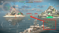 5、当发现地方战舰时,我们可以通过滑动屏幕来调整武器的瞄准方向,点击下图所标注的位置就能快速使用武器进行开火射击。