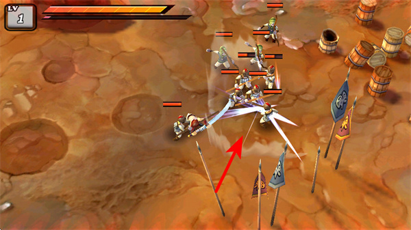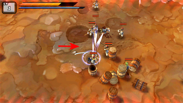 1、定位敌方单位密集的区域,操控角色展开攻击,集中火力迅速清除聚集的敌方目标。