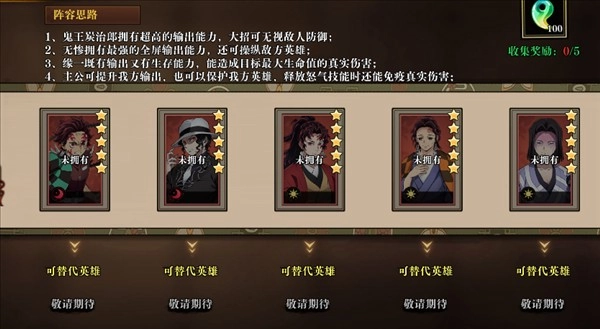 阵容成员:鬼王炭治郎+鬼舞辻无惨+继国缘一+炭十郎+产屋敷耀哉
