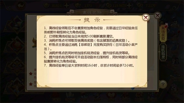 所以比较推荐的升级方法是:在打修炼之地之前,可以先离线一段时间以获取更多的离线经验。带着大量的离线经验进行修炼之地可以达到快速升级的效果!