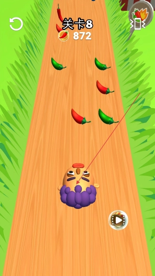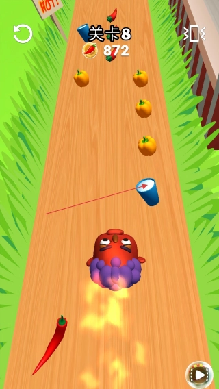 1、进入游戏挑战红辣椒关卡,通过滑动屏幕操控角色来收集辣椒。