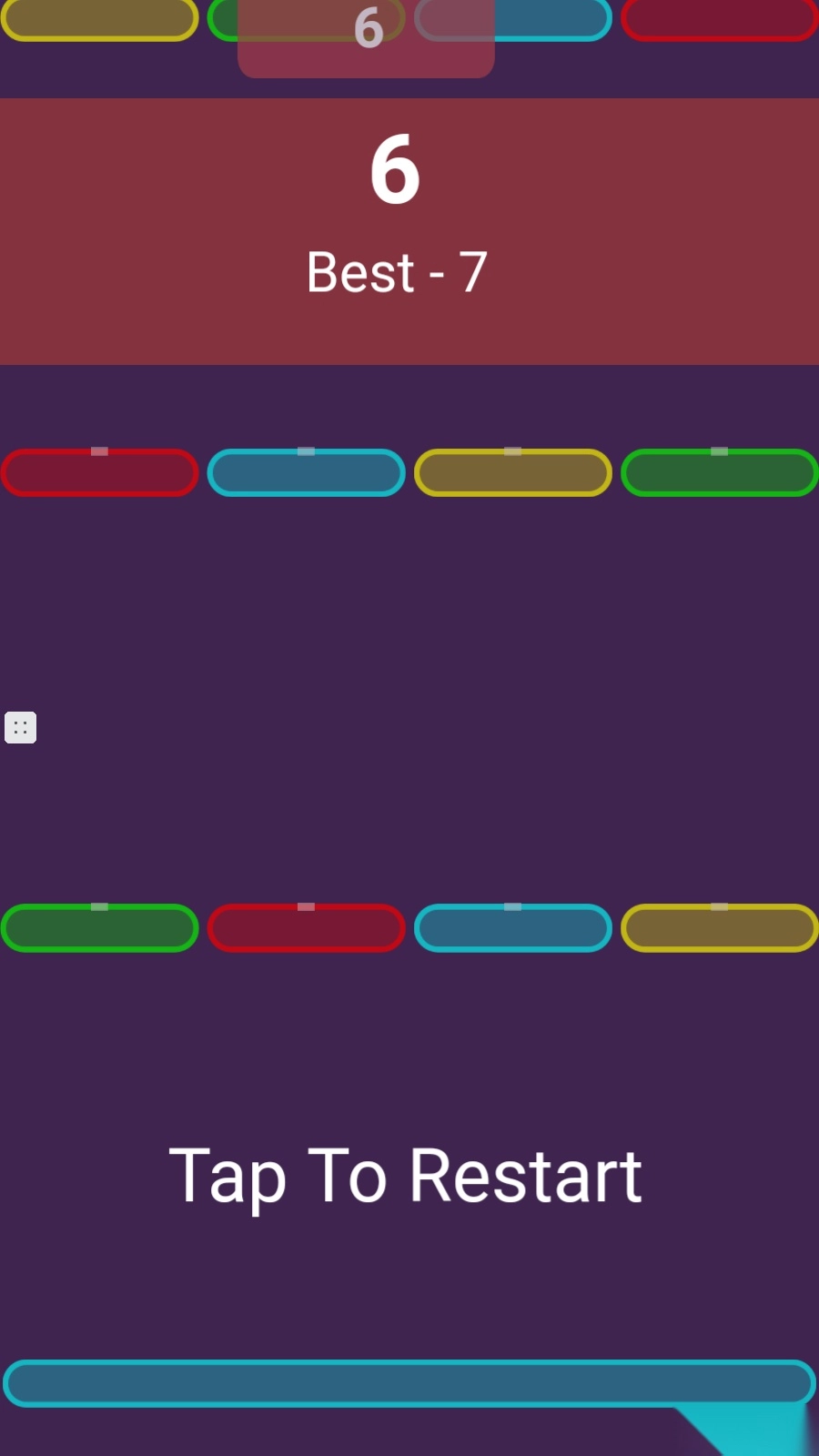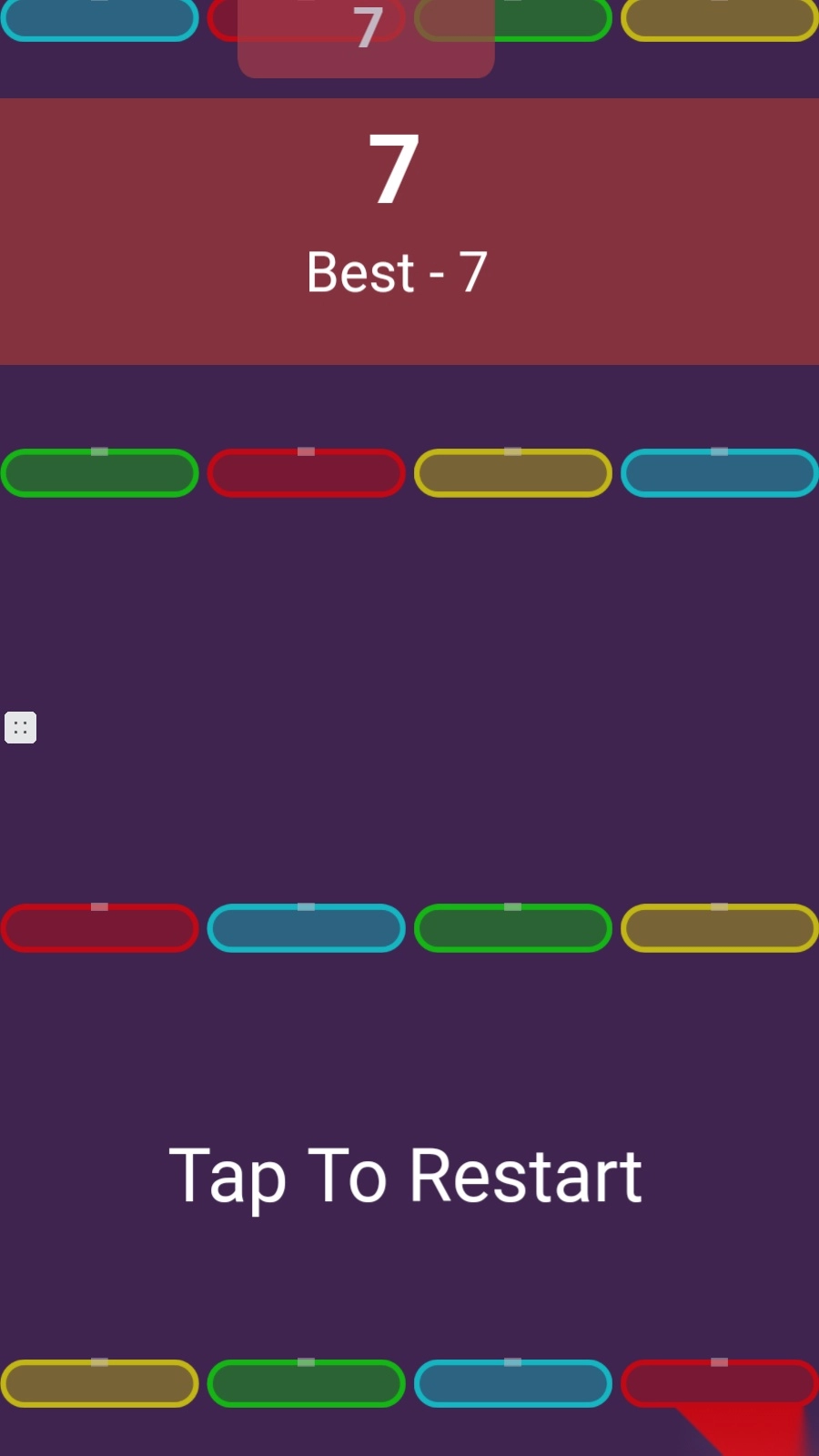 彩浪朵朵开的玩法十分简单,玩家能在游戏里操控一个小球移动,可进行左右方向的控制,让小球在不同颜色区域间左右移动来闯关。每位玩家都能通过操控小球上跳与下落的方式进行游戏,小球会随机获得一种颜色,若为黄色,就需让小球跳到黄色横条上才能继续向上跳跃,下落时也得控制它落在同色横条上,这样才能保证小球能再次跳跃。要是小球撞到不同颜色的区域,挑战就会失败,玩家可以点击重新开始按钮继续尝试。整体玩法相当简单,感兴趣的朋友可以去体验一下。