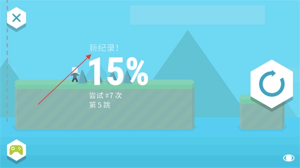 3、当角色触碰到陷阱即为死亡,记录当前最好成绩,点击右侧按钮可以重新挑战。