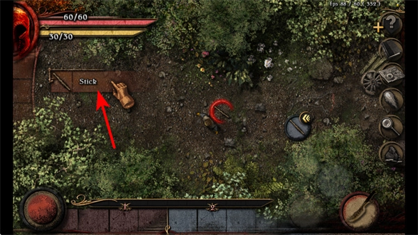 1、游戏内点击地面上的Stick木棍即可拾取基础武器,这是提升战斗能力的关键步骤,拾取过程中要留意武器的类型与属性。