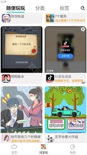 2、在主页上,既能浏览热门游戏,也可以点击下方的“找游戏”按钮,搜索并发现新游戏。