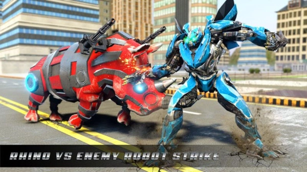 犀牛机器人游戏是一款具有变革意义的机器人动作战斗游戏,玩家能够自由变换形态、自由展开战斗。游戏里城市中巨型机器人的场景令人震撼,强劲的BGM节奏也十分出彩。游戏内有多种可自由解锁和使用的赛博机器人,还有大量任务等待玩家完成。操作简单易上手,能带来满满的乐趣与更多刺激体验,完成任务还能获得丰厚奖励。