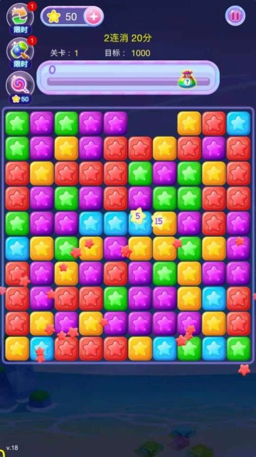 3.这款游戏的玩法绝不单调,融入了大量星星元素,使你在消除过程中能体验到丰富多样的乐趣。