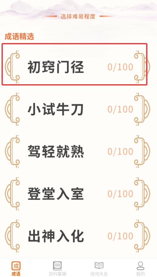 1、打开先选个难度玩,有"初出茅庐"这种简单的,也有"小试牛刀"稍微难点的,新手老手都能找到合适的。