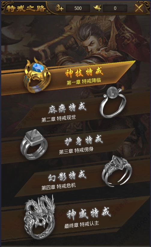 这些特戒共分为:神技特戒、麻痹特戒、护身特戒、幻影特戒、神威特戒。