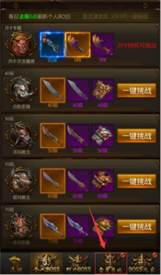 那么,雷霆禁地怎么进入呢,很简单,进入激战BOSS界面后,点击下方的雷霆禁地,即可进入!