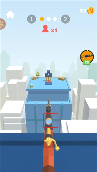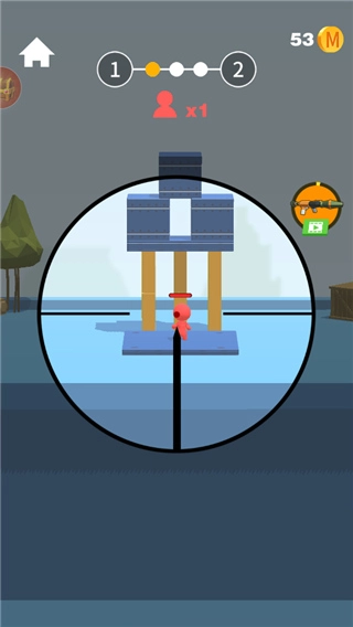 3、整体画风简约又不失大气,你需要在游戏里扮演一名狙击手,通过完成各类狙击任务来获取道具,游戏的操作手感十分流畅,玩起来相当舒适。