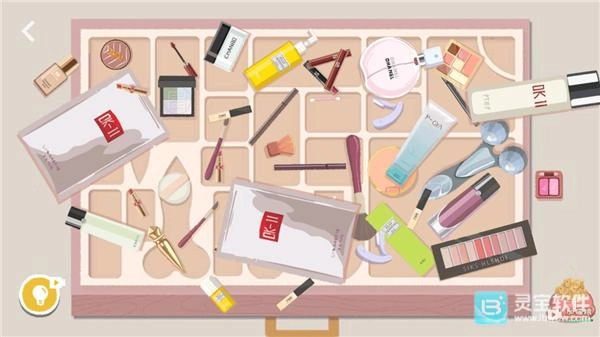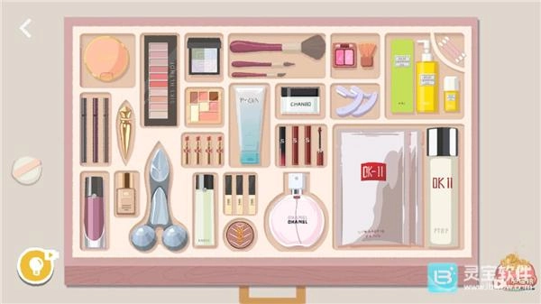 2、杂乱的化妆箱里,各类化妆品随意摆放,你得按照收纳建议把化妆箱整理妥当。