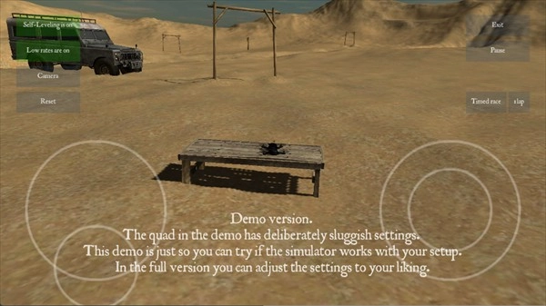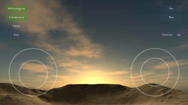 1、启动FPV模拟器后,可依据个人需求对分辨率、画质及操作模式进行设置,并选择Desert场景开展相关操作。