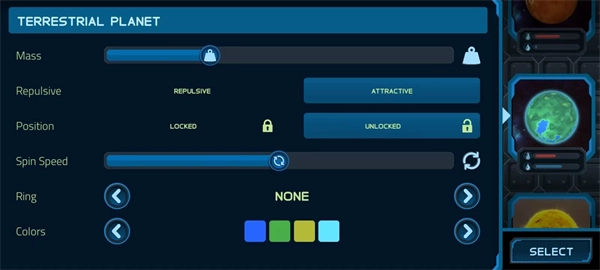 2、使用各种类型的示例来创建自己的星球,并提供各种不同的选项来帮助您随意定制;
