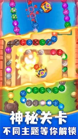 1、游戏提供了丰富多样的关卡设计,确保你的畅玩体验永不枯燥。随着关卡的推进,珠子的滚动速度会加快;