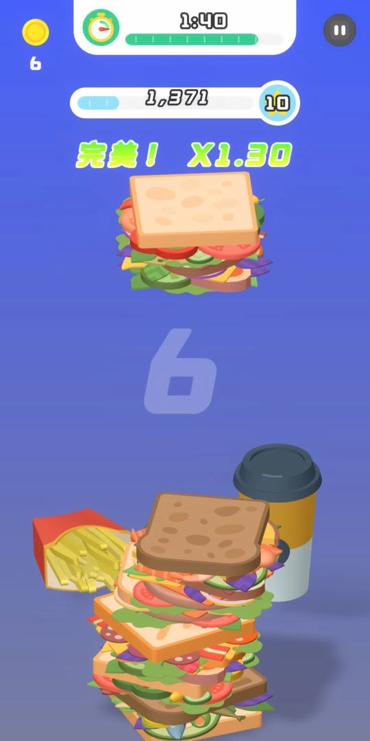 每一次成功的堆叠都会让你获得更高的分数,可一旦三明治倒塌,游戏便宣告结束。